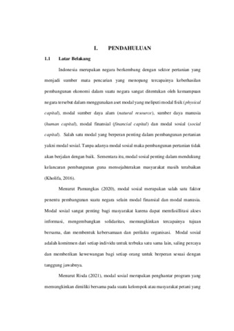 Modal sosial merupakan salah satu faktor penentu pembangunan suatu negara selain modal finansial dan modal manusia. Kondisi modal sosial di perdesaan berbeda dengan di perkotaan. Perbedaan ini ditandai dengan kenyataan bahwa masyarakat perdesaan memiliki sistem kehidupan yang berkelompok atas dasar kekeluargaan, berbeda dengan masyarakat perkotaan yang seringkali mampu mengihidupi dirinya sendiri tanpa harus bergantung pada orang lain. Apabila kondisi pertanian masyarakat baik maka kesejahteraan masyarakat juga akan meningkat seperti pendapatan yang cukup, pendidikan dan kondisi kualtias kesehatan. Masyarakat perdesaan pada umumnya bergantung pada sektor pertanian Sama halnya dengan Kabupaten Kutai Kartanegara, pertanian merupakan salah satu sektor untuk meningkatkan perekonomian dan salah satu subsektor nya yaitu tanaman Tomat. Kecamatan Sebulu yang menjadikan tanaman Tomat sebagai komuditas yang banyak diproduksi.