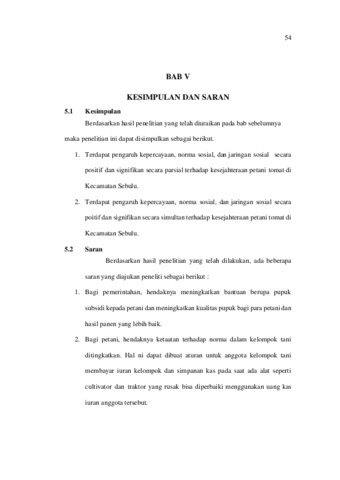 Hasil penelitian ini menunjukan bahwa variabel kepercayaan berpengaruh positif dan signifikan terhadap kesejahteraan petani tomat, norma sosial berpengaruh positif dan signifikan terhadap kesejahteraan petani tomat, jaringan sosial berpengaruh secara positif dan signifikan terhadap kesejahteraan petani tomat dan kepercayaan, norma sosial, jaringan sosial. berpengaruh secara simultan terhadap kesejahteraan petani tomat.