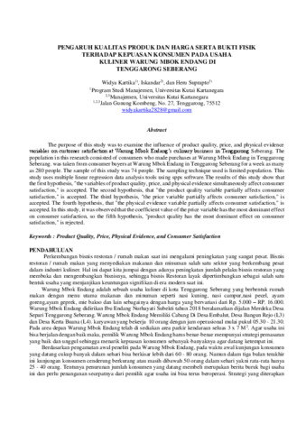 variables on customer satisfaction at Warung Mbok Endang’s culinary business in Tenggarong Seberang. The