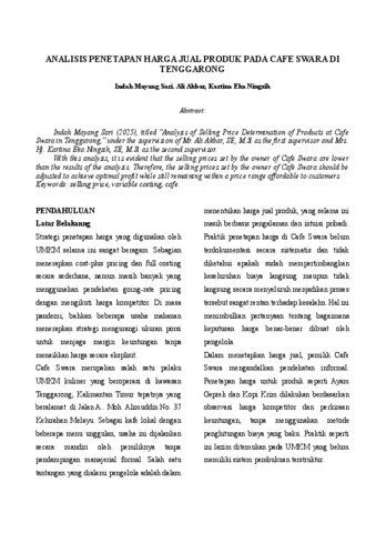 Sari, Indah Mayang and Akbar, Ali and Ningsih, Kartika Eka (2026) Analisis Penetapan Harga Jual Produk Pada Cafe Swara Di Tenggarong. Program Studi Manajemen.