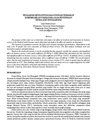 Arum, Sarah Pandan (2025) Pengaruh Kreativitas Dan Inovasi Terhadap Keberhasilan Usaha Pada Jasa Penyewaan Tenda Q Di Tenggarong. Program Studi Manajemen.