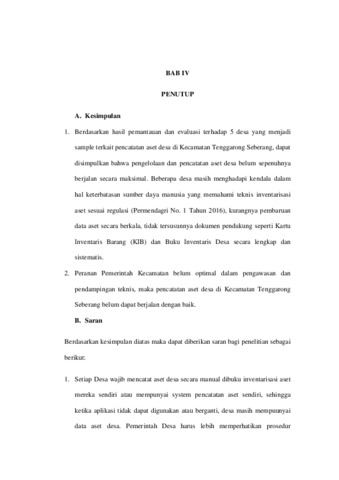 Hasil penelitian Aset desa pada lokasi yang peneliti jadikan sample menunjukan bahwa masih terdapat desa yang belum melakukan inventarisasi dengan baik dengan berbagai masalah, kurang memahami regulasi terkait peraturan perundang-undangan, belum mendapatkan bimbingan teknis dari instansi terkait dan juga kurangnya pembinaan dari pemerintah kecamatan dalam mengawasi kegiatan inventarisasi aset desa ini. Oleh karena itu disimpulkan perlunya penguatan regulasi, pelatihan bagi aparatur desa, mendalami inventarisasi aset dan pemerintah kecamatan memberikan pengawasan, pembinaan, evaluasi, sosialisasi dan terjun langsung ke desa untuk memastikan kegiatan inventarisasi aset ini berjalan dengan baik.