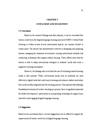 HAYATI, TIKA NUR. 2025.An Analisis of Teachers’s Creativity in the Process of Teaching English at SMKN 1 Sebulu Filial Selerong in Academic Year 2025/2026. Thesis Departement of English Education Study Program, Faculty of Teacher Training and Education. Tenggarong: University of Kutai Kartanegara. Advisors: (1) Samsu Armadi, S.S., M.Pd (2) Elsa Widya Hapsari, S.Pd., M.Ed