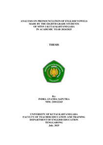 Saputra, Indra Ananda (2025) Analysis on Pronounciation of English Vowels Made by the Eighth Grade Students of MTSN 1 Kutai Kartanegara in Academic Year 2024/2025. Sarjana thesis, Universitas Kutai Kartanegara.
