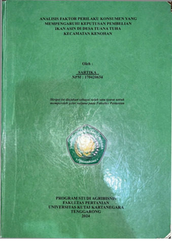 Sartika, Sartika (2026) Analisis Faktor Perilaku Konsumen Yang Mempengaruhi Keputusan Pembelian Ikan Asin Di Desa Tuana Tuha Kecamatan Kenohan. Sarjana thesis, Universitas Kutai Kartanegara.
