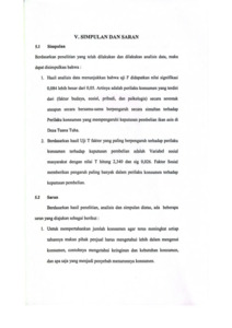 Hasil analisis data menunjukkan bahwa uji F didapatkan nilai signifikasi 0,084 lebih besar dari 0,05. Artinya adalah perilaku konsumen yang terdiri dari (faktor budaya, sosial, pribadi, dan psikologis) secara serentak ataupun secara bersama-sama berpengaruh secara simultan terhadap Perilaku konsumen yang mempengaruhi keputusan pembelian ikan asin di Desa Tuana Tuha. Hasil Uji T faktor yang paling berpengaruh terhadap perilaku konsumen terhadap keputusan pembelian adalah Variabel sosial masyarakat dengan nilai T hitung 2,340 dan sig 0,026. Faktor Sosial memberikan pengaruh paling banyak dalam perilaku konsumen terhadap keputusan pembelian.