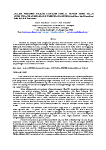 Metode yang digunakan adalah deskriptif kualitatif dengan pendekatan studi kasus. Hasil penelitian menunjukkan bahwa penerapan aplikasi SI APIK mampu meningkatkan efisiensi dan akurasi dalam pencatatan transaksi.