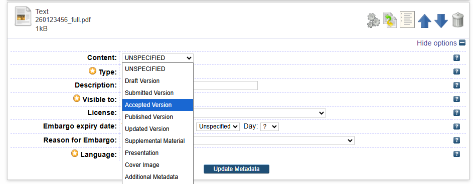 - ✔ Pilih Accepted Version pada pilihan Content seluruh dokumen