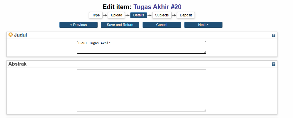 - Isi Judul Tugas akhir dan abstrak dengan huruf kapital di awal kata kecuali singkatan